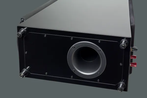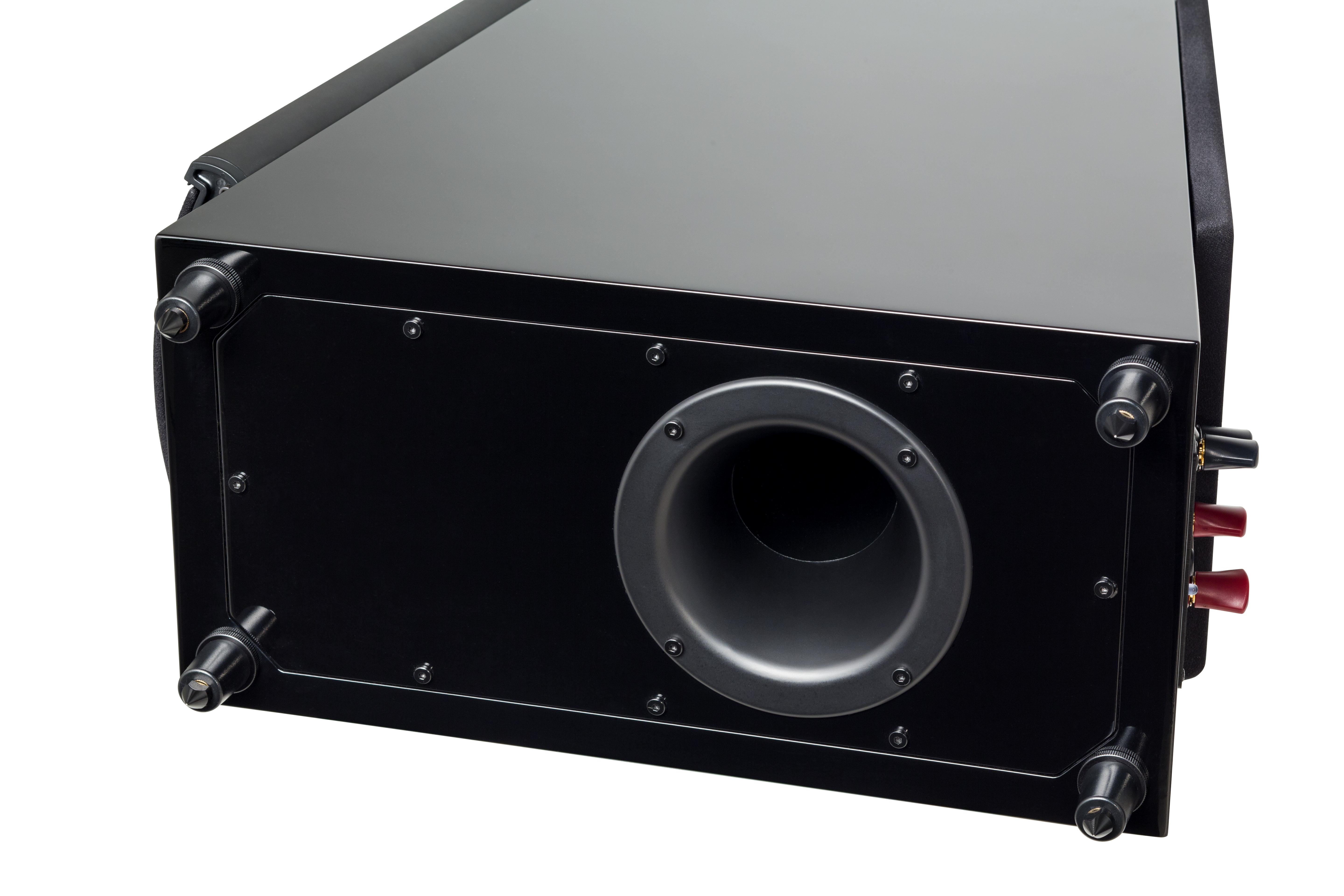 • Ασύμμετρο Bass Reflex Περίβλημα: Το μη συντονιστικό περίβλημα με δύο θυρίδες (ports) φιλοξενεί τους οδηγούς μπάσου, μειώνοντας ανεπιθύμητες αντηχήσεις και εξασφαλίζοντας καθαρό, δυναμικό μπάσο.