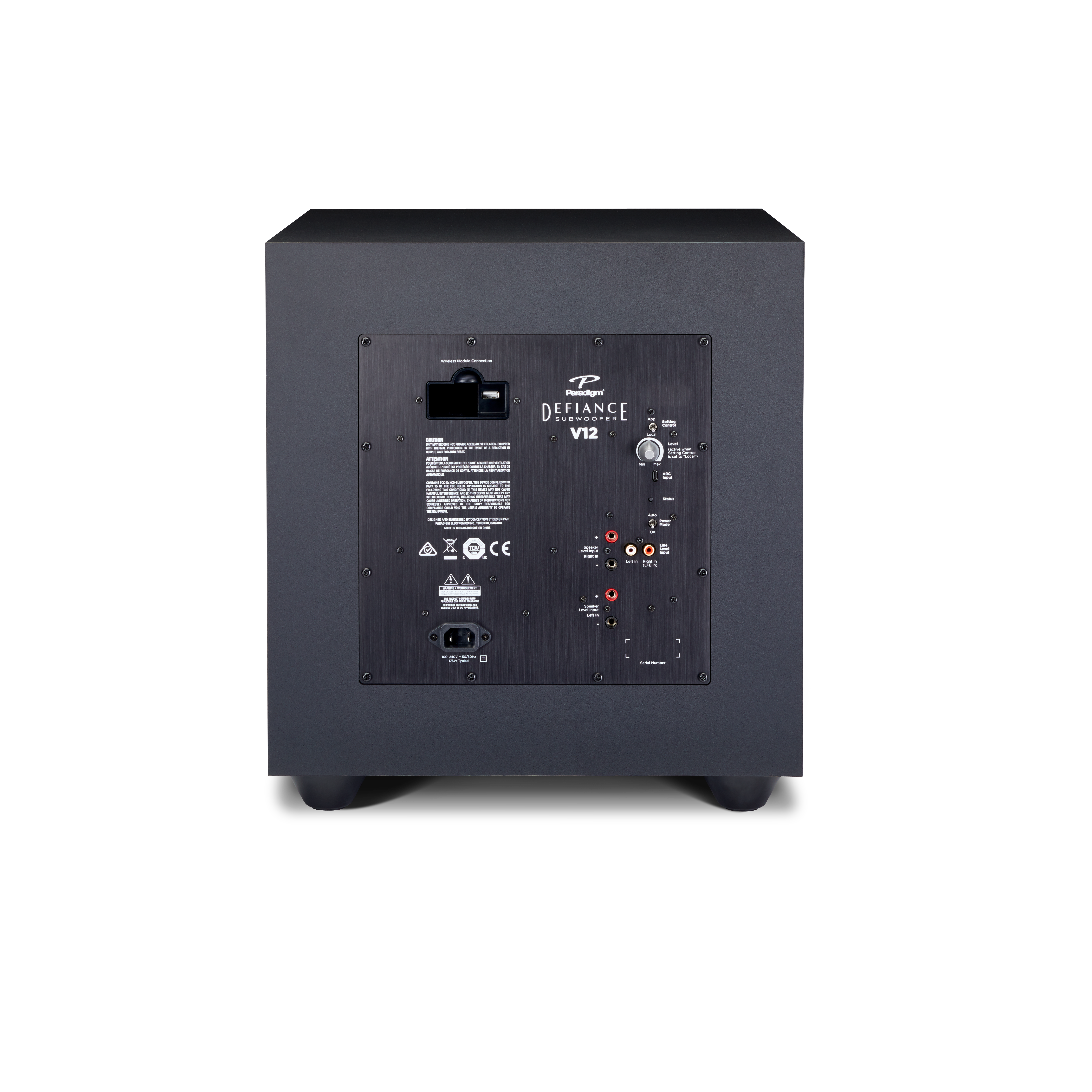 Το Paradigm Defiance V12 είναι το κορυφαίο subwoofer της σειράς Defiance V, σχεδιασμένο για να προσφέρει βαθύ, δυναμικό και καθαρό μπάσο σε compact μέγεθος, ιδανικό για μικρούς έως μεσαίους χώρους, στερεοφωνικά συστήματα ή home theater setups. Διαθέτει έναν οδηγό 12 ιντσών (305 mm) από carbon-loaded polypropylene, ενισχυτή Class-D 120W RMS (250W Dynamic Peak), και bass reflex σχεδιασμό με down-firing port για ευελιξία τοποθέτησης. Υποστηρίζει Anthem Room Correction (ARC®) μέσω USB και μικροφώνου (δεν περιλαμβάνεται), app control μέσω Bluetooth, και προαιρετικό Defiance WT wireless module. Κατασκευασμένο στον Καναδά, διατίθεται σε Satin Black φινίρισμα, συνδυάζοντας λιτή αισθητική με στιβαρή κατασκευή.