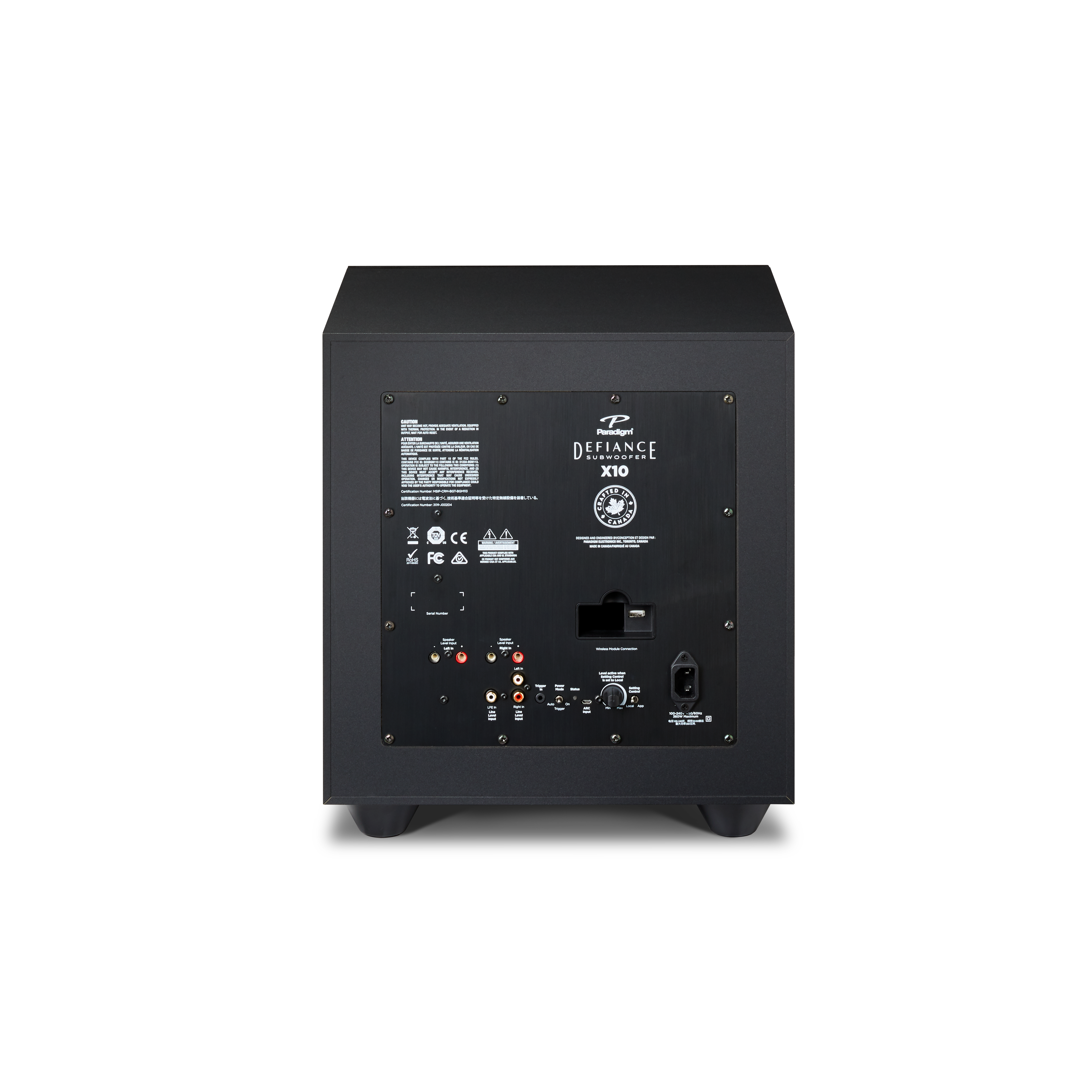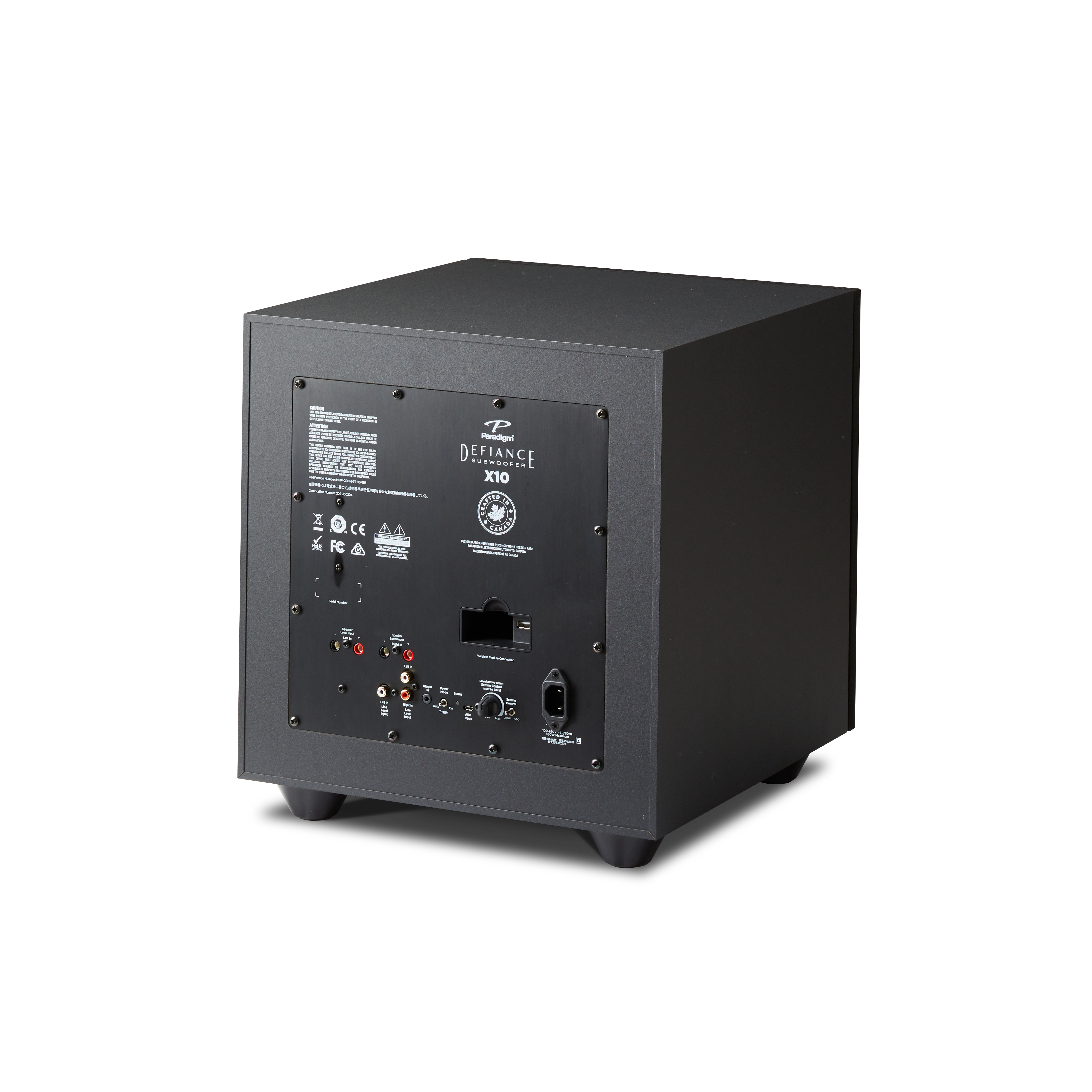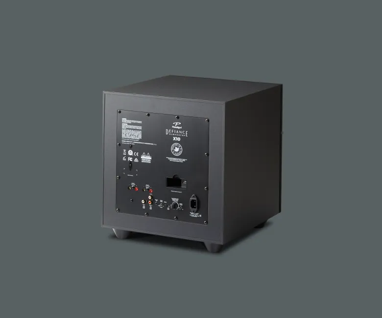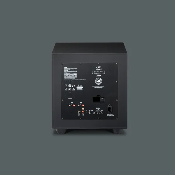 Το Paradigm Defiance X10 είναι ένα κορυφαίο subwoofer της σειράς Defiance X, σχεδιασμένο για να προσφέρει βαθύ, ισχυρό και καθαρό μπάσο σε compact μέγεθος, ιδανικό για μικρούς έως μεσαίους χώρους, home theater και hi-fi συστήματα. Διαθέτει έναν οδηγό 10 ιντσών (254 mm) με Active Ridge Technology (ART™) και carbon-loaded polypropylene cone, ενισχυτή Class-D 300W RMS (600W Dynamic Peak), και bass reflex σχεδιασμό με down-firing high-velocity low-turbulence port. Υποστηρίζει Anthem Room Correction (ARC®) με περιλαμβανόμενο μικρόφωνο, app control μέσω Bluetooth, και προαιρετικό Defiance WT wireless module. Κατασκευασμένο στον Καναδά, διατίθεται σε Satin Black φινίρισμα, συνδυάζοντας στιβαρή κατασκευή με μοντέρνα αισθητική.