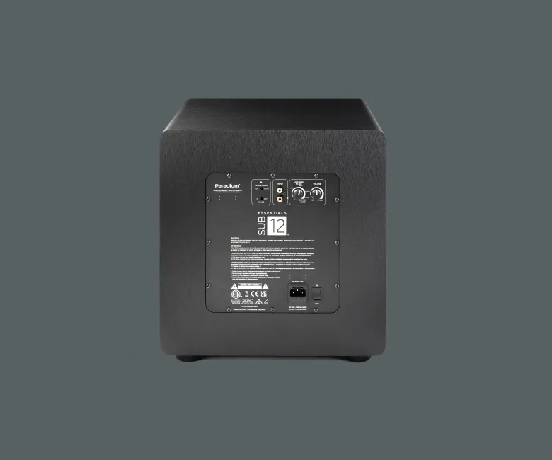 Το Paradigm Essentials Sub 12 είναι ένα υψηλής απόδοσης subwoofer της σειράς Essentials, σχεδιασμένο για να προσφέρει βαθύ, χωρίς παραμόρφωση μπάσο που ζωντανεύει τη μουσική, τις ταινίες και τα βιντεοπαιχνίδια. Ιδανικό για μεσαίους έως μεγάλους χώρους (15–40 m²), συνδυάζει την υπογραφή απόδοσης της Paradigm με μοντέρνα, διακριτική αισθητική. Κατασκευασμένο στον Καναδά, διαθέτει φινίρισμα Brushed Black Vinyl, σφραγισμένο περίβλημα MDF με ενισχυμένο woofer baffle και αποσπώμενη υφασμάτινη γρίλια, προσφέροντας κομψότητα και ανθεκτικότητα.