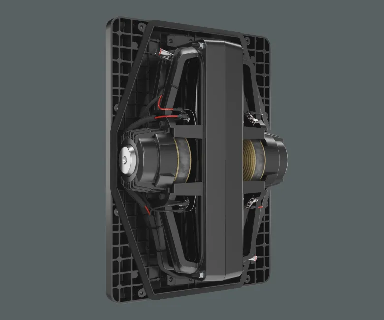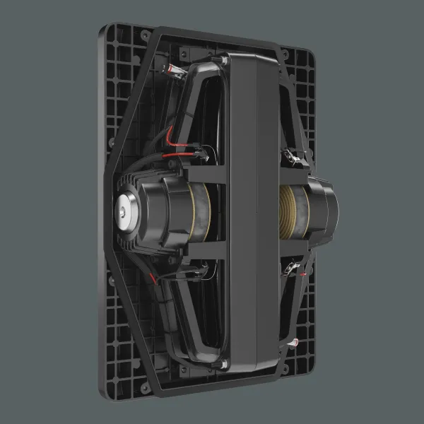 Μέσα στην κρυφή καμπίνα βρίσκεται η καρδιά του συστήματος: ένα woofer 12 ιντσών υψηλής διαδρομής (high-excursion). Διαθέτει έναν εξαιρετικά άκαμπτο κώνο από ορυκτο-ενισχυμένο συμπολυμερές πολυπροπυλένιο και ένα τεράστιο μαγνητικό σύστημα, που του επιτρέπουν να κινεί τεράστιες ποσότητες αέρα με απόλυτο έλεγχο. Αυτός ο σχεδιασμός είναι κρίσιμος για την παραγωγή βαθύ και δυνατού μπάσου από ένα σύστημα που "αναπνέει" μέσα από ένα μικρό άνοιγμα.